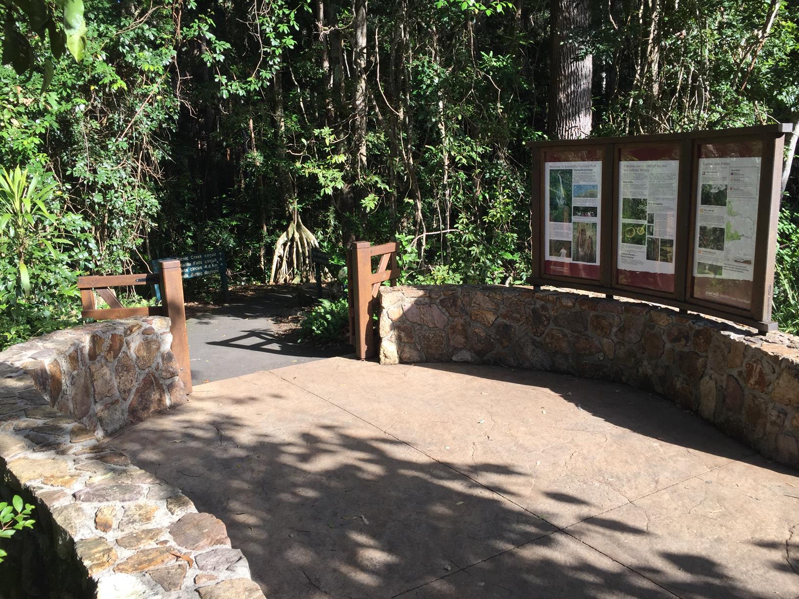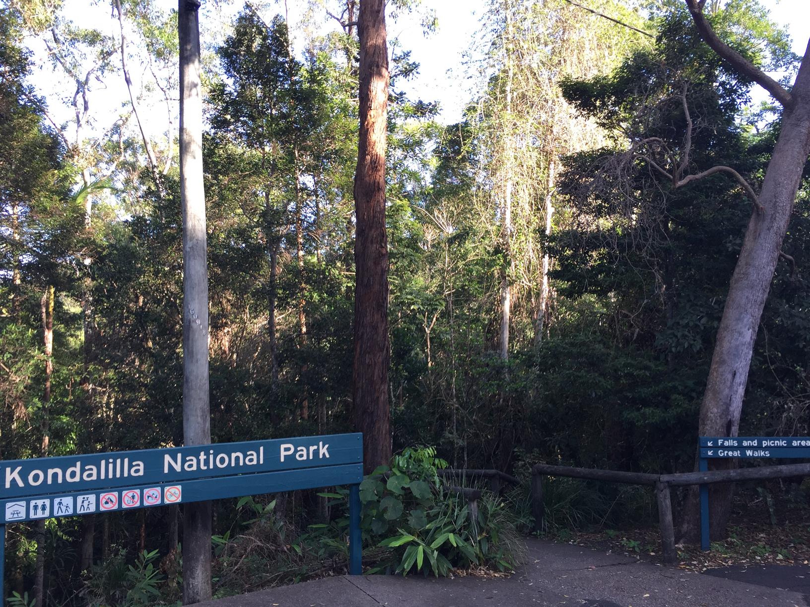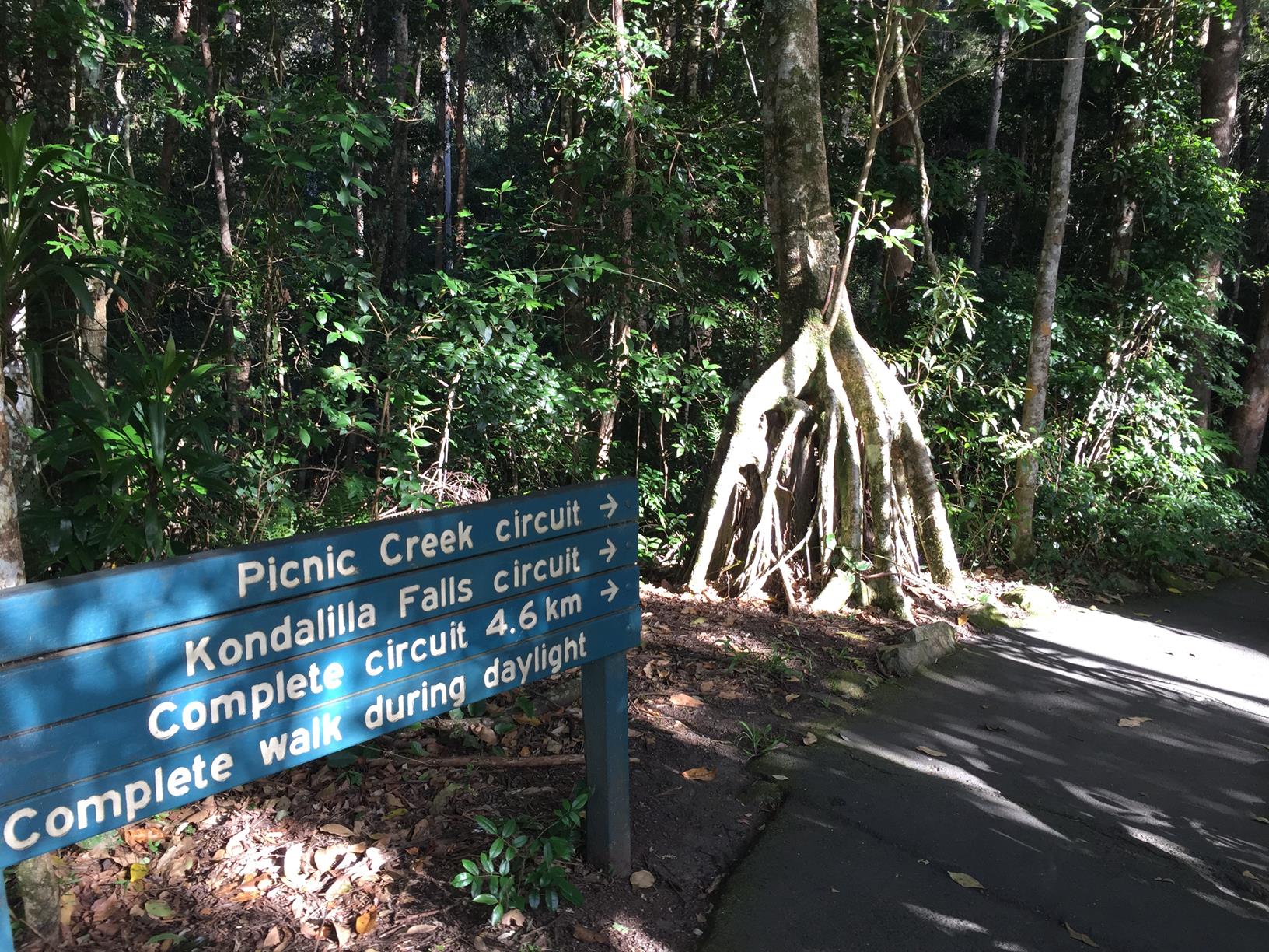 To the starting point: Travel on the Bruce Highway (M1) and take the Blackall Range tourist drive (23) – actual road is Landsborough Maleny Road. Turn right into Maleny Montville Road, which eventually becomes Balmoral Road and then Main Street as you come into Montville. Continue on this road which will become Flaxton Drive. Approximately 2.6km north of Montville turn left onto Kondalilla Falls Road and travel another 700m to the park entrance.