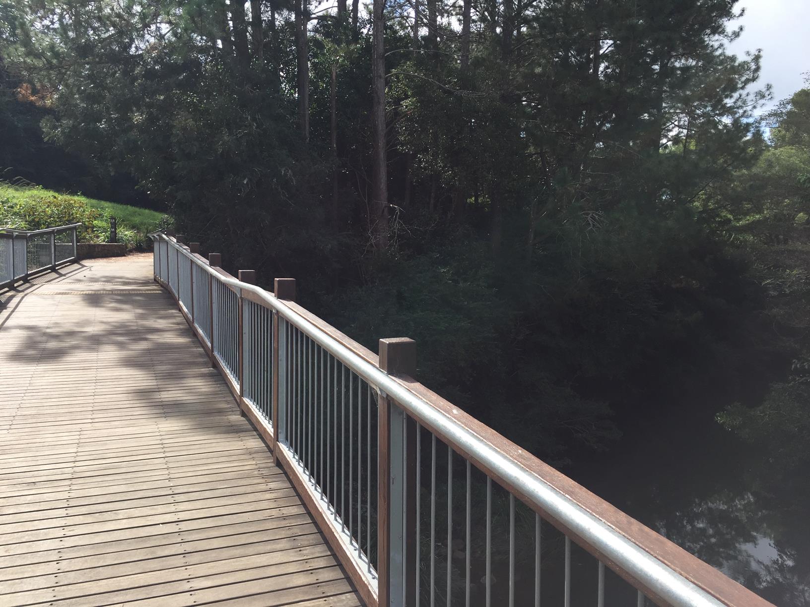 To the starting point: Head to the roundabout at the junction of Maple, Coral and Bunya Streets and find a car park close by. The walk starts about 10 metres from the roundabout on the same side of the road as Woolworths, on the creek bank opposite – you can’t miss the boardwalk.